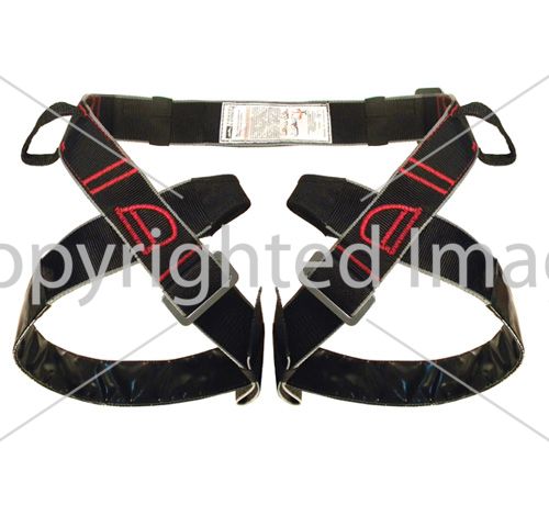 Ніжні обхвати захищені протекторами із міцного матеріалу, місця кріплення страхувальної мотузки додатково захищені протекторами.